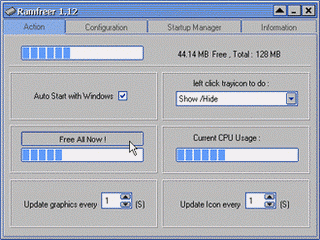 Windows and applications are getting fatter and fatter, even if you have 256MB of RAM, it's not enough !... So, Get Our RAMfreer! - It will get the lost memory back!