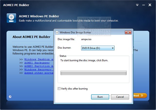 Aomei PE Builder is designed to help create Windows PE-based bootable media easily and more.