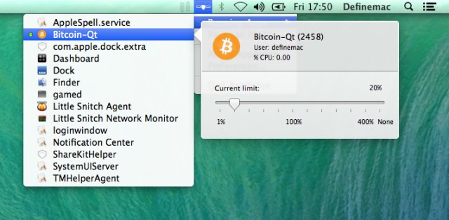 AppPolice is an Open Source app for Mac OS X with a minimalistic UI that lets you quickly throttle down the CPU usage of any running process.