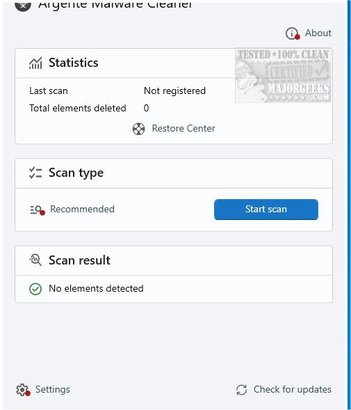 Argente Malware Cleaner is designed to conduct a comprehensive analysis of critical areas within a computer that are often targeted by malicious software. This tool helps detect potentially harmful components and files, providing an important additional layer of security. We want to emphasize that Argente Malware Cleaner is not a substitute for a comprehensive antivirus program. Instead, it functions as an on-demand scanner, lacking the capability to offer continuous protection against malware. However, it can effectively complement your primary security solution. For a full solution, consider Malwarebytes.