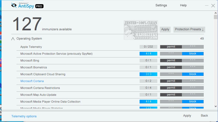 Ashampoo AntiSpy Pro allows you to block tracking attempts and eliminate telemetry data gathering to secure your Windows machine.