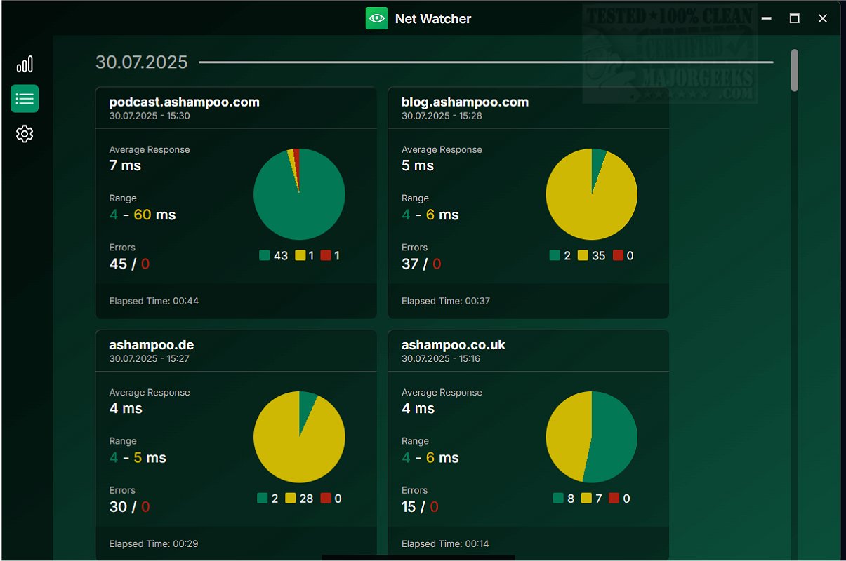 In addition, Ashampoo Net Watcher tracks the frequency and nature of connection errors, providing a thorough and realistic assessment of any network-related problems you may encounter.