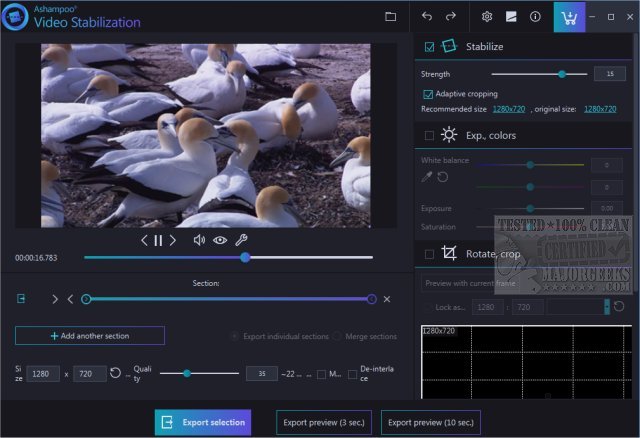Ashampoo Video Stabilization does more than the name implies, it also allows you to rotate and crop your videos. The program mirrors and rotates videos either by 90/180/270 degrees or freely with custom image formats and aspect ratios. Other similar types of video programs require you to click through multiple menus, Ashampoo Video Stabilization bundles all its features in one easily accessible place with sliders and text boxes for quick input. Ashampoo Video Stabilization will turn your camera footage into vibrant videos, and it supports all standard formats and codecs at any resolution (including HD, 2K and 4K).