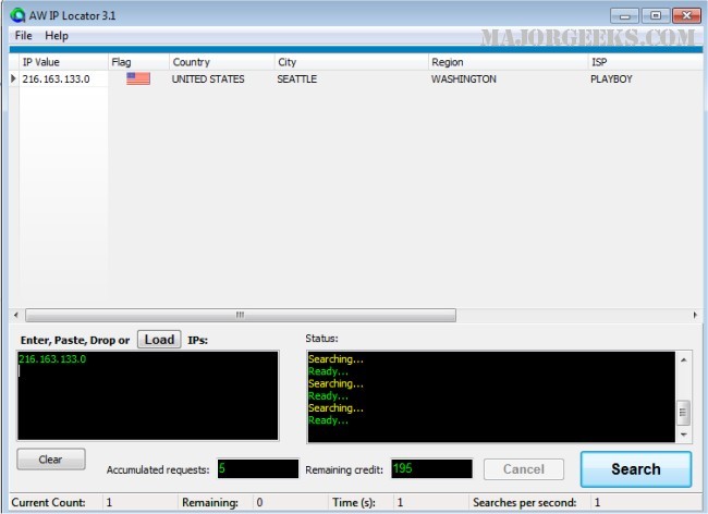 It effortlessly allows you to resolve IPs to country, city, region and ISP by providing instant access to our 1400 MB online databases with more than 7.9 million IP ranges. You can request information about multiple IPs at the same time, and the response is quickly sent to you in a tightly compressed format via rates that can reach values well above 100 queries per second.