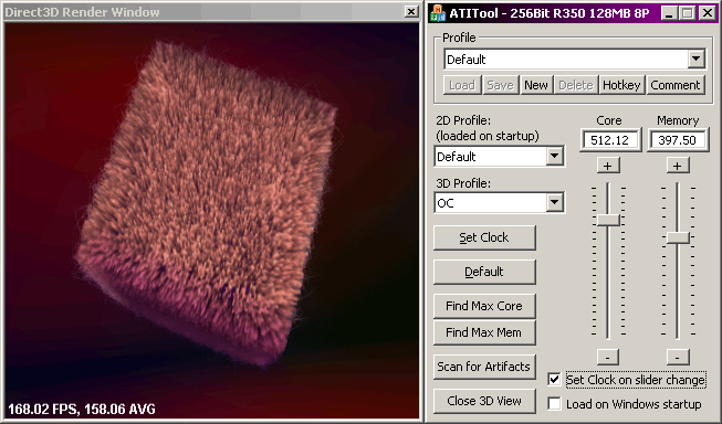 - Artifact scanning mode for non-ATI cards - use together with a 3rd party overclocking utility.