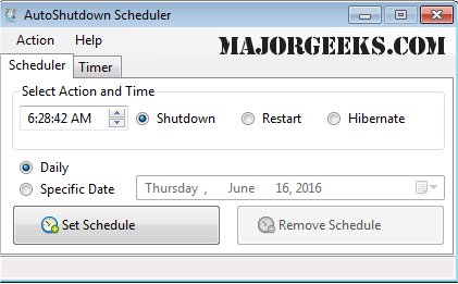 Easily set a timer to shut down your PC after a specific time duration or for a specific date and time. You can remove or close the application after setting a schedule.
