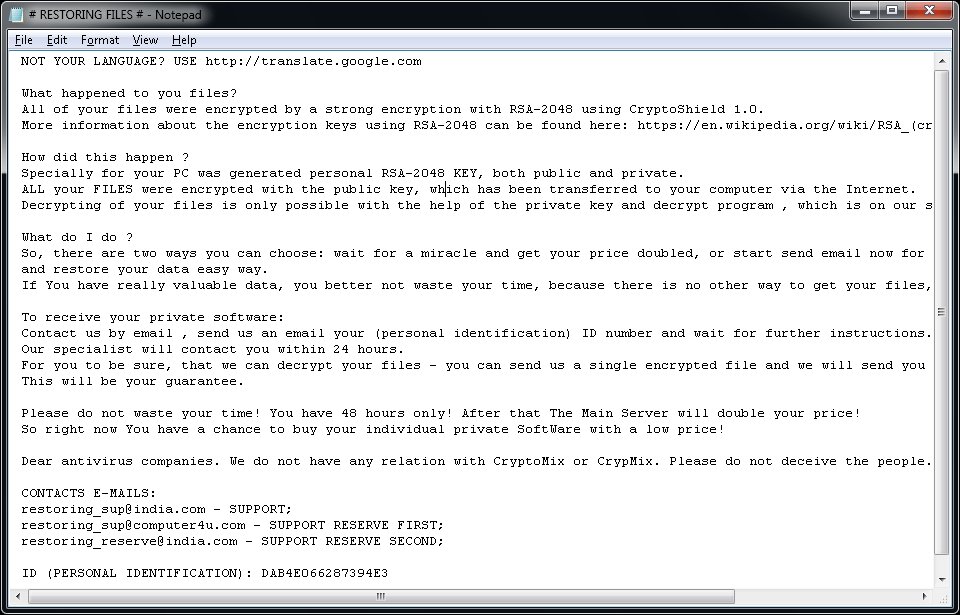 Avast Decryption Tool for CryptoMix can unlock the CryptoMix ransomware (also known as CryptFile2 or Zeta) and later CryptoShield. All the Avast Decryption Tools are available in one zip here.