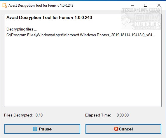 Screenshot for Avast Decryption Tool for Fonix