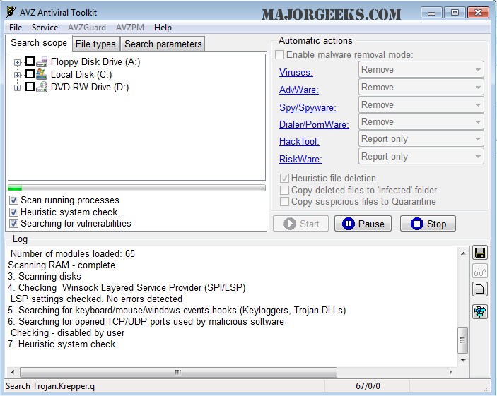 Screenshot for AVZ Antiviral Toolkit