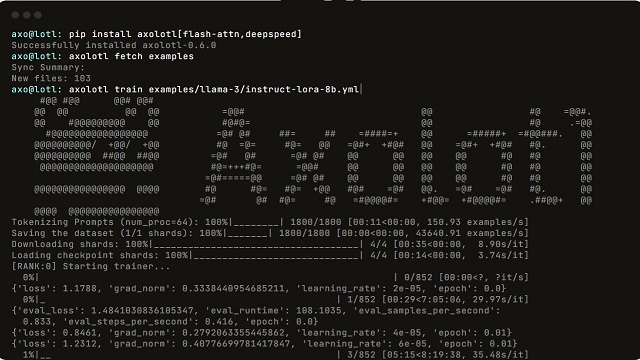 Axolotl is a command-line framework, so expect to install it into a Python environment, grab or create a training configuration, prepare your dataset, and launch training from the terminal. The project provides many example configurations, which is where you should start rather than staring at a blank YAML file….Unless you are very verse in YAML.