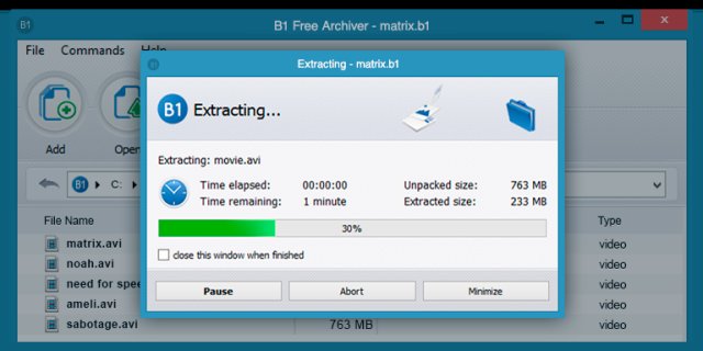 B1 Archiver is a free file archive manager that works with most popular archive formats as well as with its B1 format.