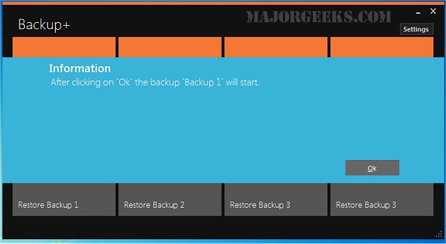This little backup utility makes quick work of backing up important data files by providing a simple UI that will be useable by any skill level. You can create a total of 4 backups within approximately 4 simple steps. No complicated configuration needed here at all.