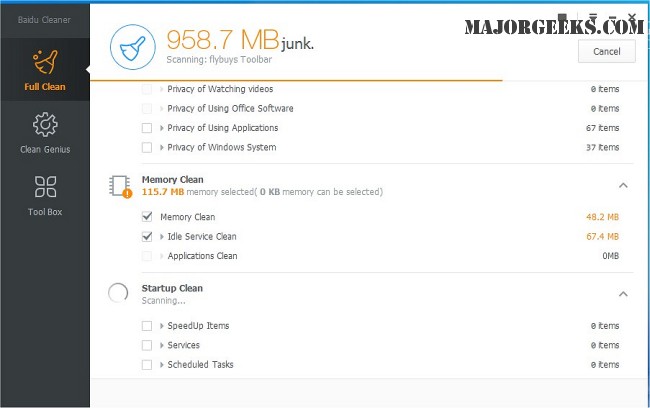 Baidu Cleaner's "Startup Manager" feature detects all auto-start items on your PC, and allows you to easily turn them off or on to improve your boot time and overall computer performance.