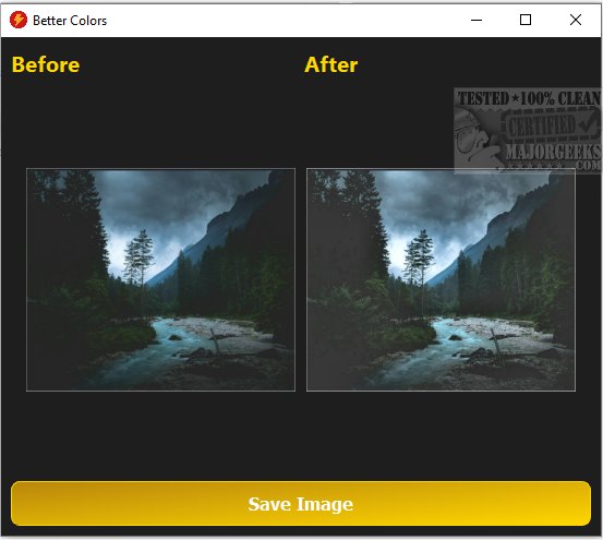 Better Colors provides a simple, direct approach to image editing. It accepts single image inputs through direct drag-and-drop onto its interface and starts processing immediately. You can then save the enhanced image to a location of your choosing. Doesn't get much simpler than that!
