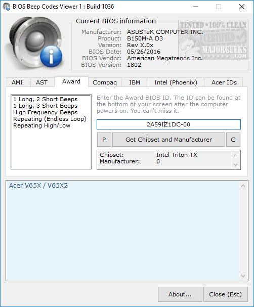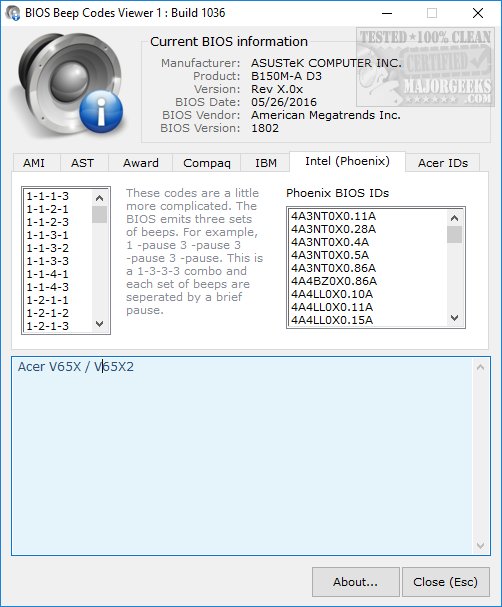 BIOS Beep Codes Verifier 1.0.3.1036