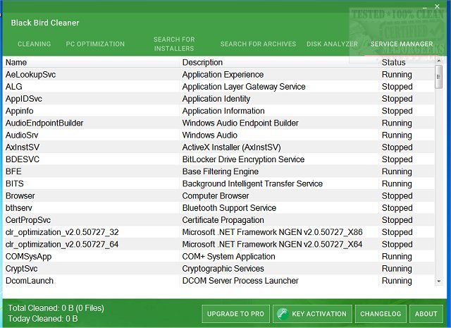 Black Bird Cleaner will help preserve hard disk space by keeping your machine free of unnecessary junk files, logs, trash, cookies, etc.