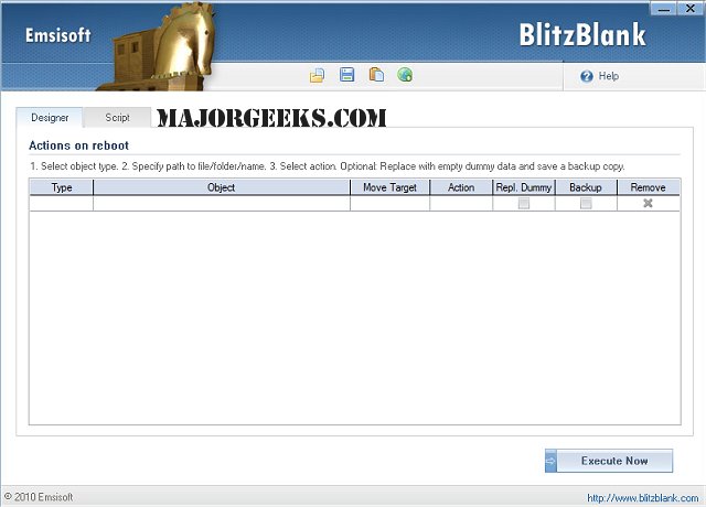 Emsisoft BlitzBlank should be used by professionals or on the advice of experienced users only! It can destroy your operating system if incorrectly used. Proceed with caution!