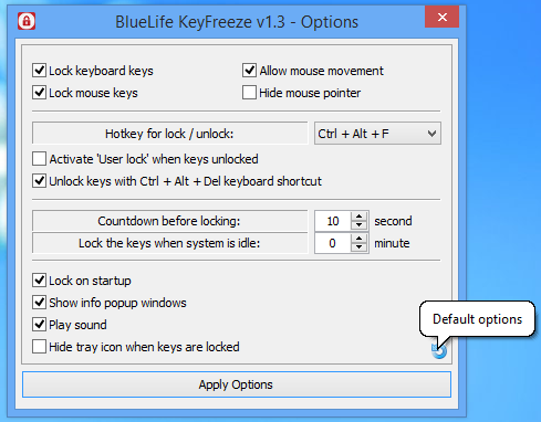 BlueLife KeyFreeze is a lightweight and straightforward application for blocking keyboard and mouse usage without the need to lock your screen.