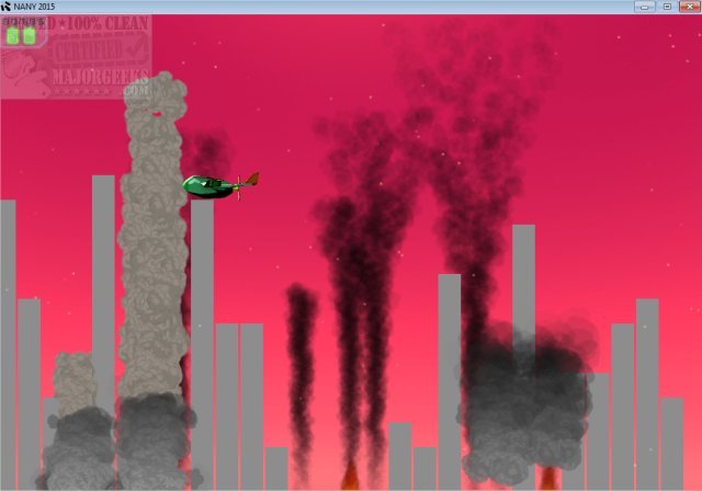 The strategy here is to hit the tallest buildings as early on as possible because if you don't, you will crash into them and die ending the game. You can not manually change your flight path; each pass brings your bomber lower and lower. During gameplay, you are only allotted two bombs per run so make them count.