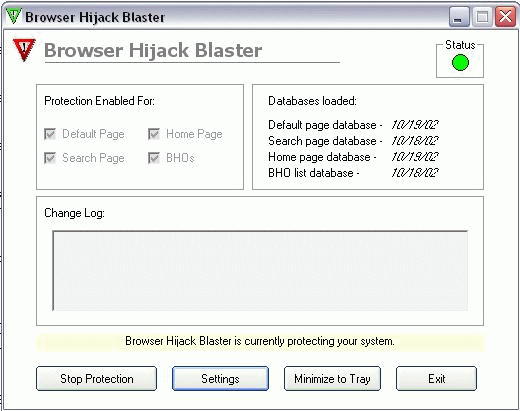 Browser Hijack Blaster also can detect changes between the times it is run. If a spyware application tries to install its BHO at boot-up, and change settings at boot-up, before Browser Hijack Blaster is activated, you will be notified and (like the situation above) given the option to keep the change or to revert to your previous settings.