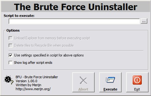 BFU is a scripting program that can execute a series of preset commands like a Windows batch file, aimed at uninstalled programs that are hard to remove, uninstall improperly or are simply unwanted. Scripts are plaintext and can be written with Notepad, and the command syntax is very transparent.