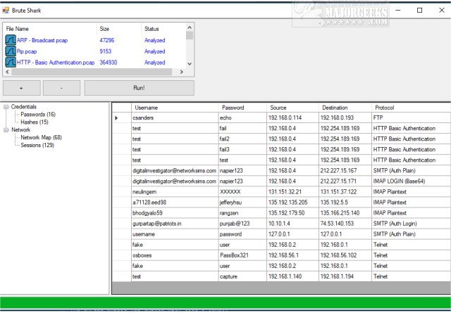 There are two BruteShark versions available; One is a GUI-based application (Windows), and the second is a Command Line Interface tool (Windows and Linux). MajorGeeks download is the GUI installer.