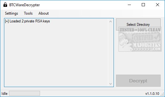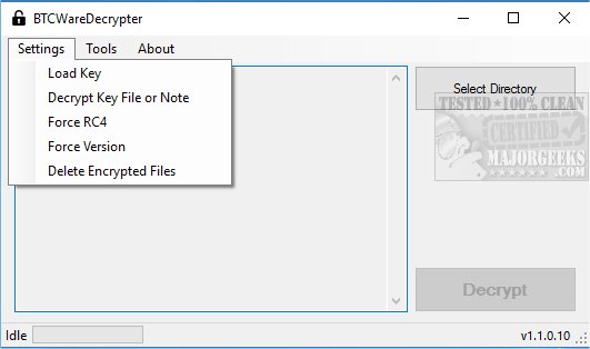 While you can select a directory and decrypt like his other tools, this one has many other options for dealing with this complicated strain. The settings tab allows you to load a key, decrypt a key file or note, force RC4, force version, and of course, delete encrypted files. The tools tab includes a BruteForcer as well.