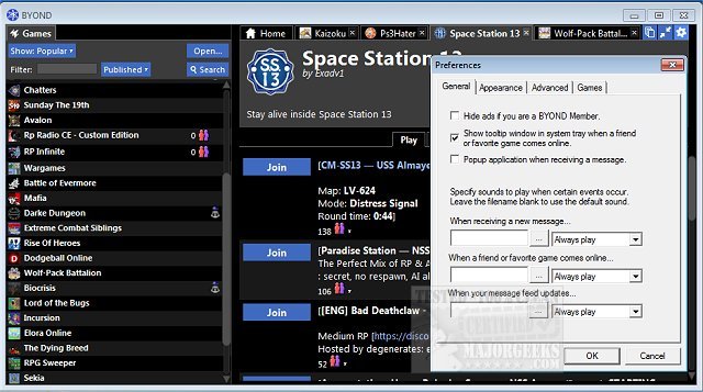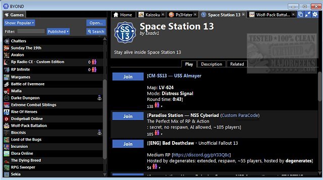 You can play many great games or get creative and make your own. As a player on BYOND, you can enjoy hundreds of games created by other users in the community.