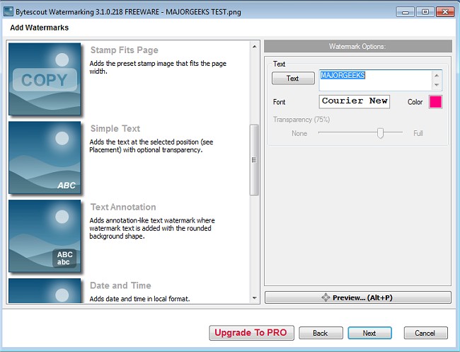 Bytescout Watermarking is a tool that includes a built-in set of ready-to-use watermark types allowing you to easily protect your pictures.