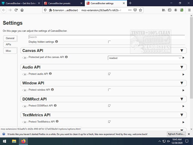 Canvas Blocker will be a useful privacy asset while browsing with the listed browsers, allowing you to completely or selectively block the Canvas element.