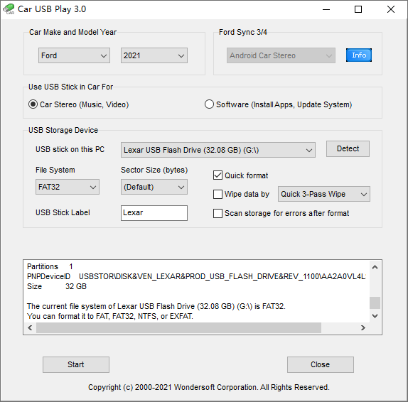 Car USB Play is intuitive and easy to use. It automatically detects most automakers and gives you the option to format the USB drive for music or software.