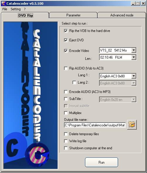 Catalencoder is a very easy to use DVD ripper. Using Catalencoder you can convert your favorite DVD in a DivX/XviD video file with only a few clicks.