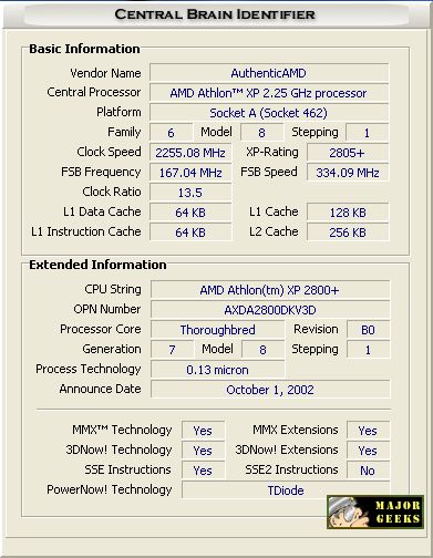 Central Brain Identifier is designed to provide detailed recognition and obtaining the most complete extended information for all AMD processors. It recognizes more than 40 various models of the AMD processors. It shows not