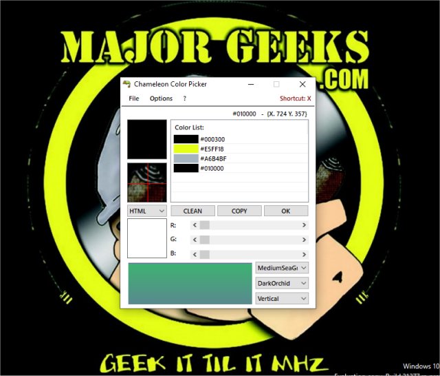 Chameleon Color Picker is a freeware, portable exe to choose a color from your desktop or any open application.