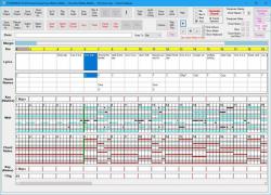 The program contains a sequencer-style display that can control the MIDI file tracks' volume, panning, muting, soloing, and patching.