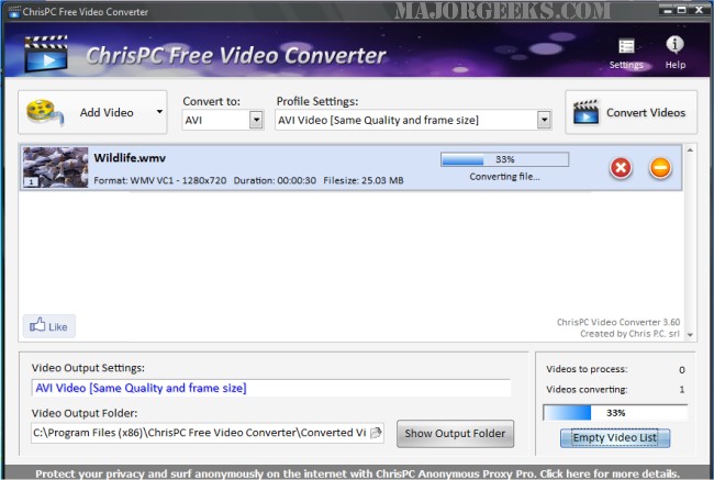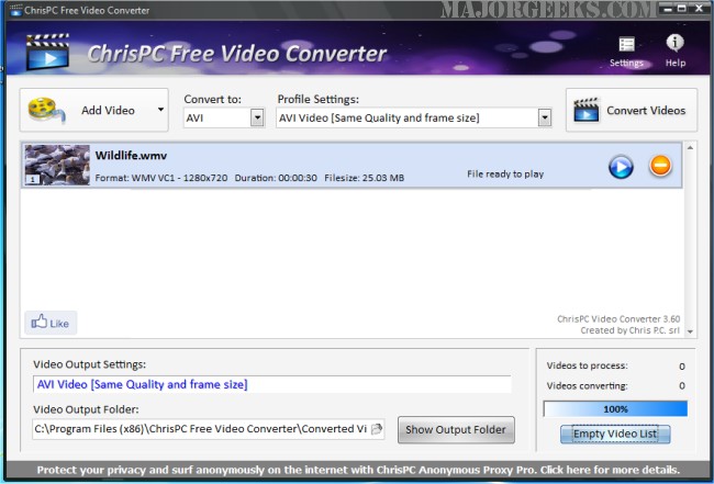 Do you need to put your favorite family movies on your tablet, phone, or other mobile devices? ChrisPC Free Video Converter is a perfect choice - with one click, you add your video files from your PC to the process list and press the "Convert Videos" button.