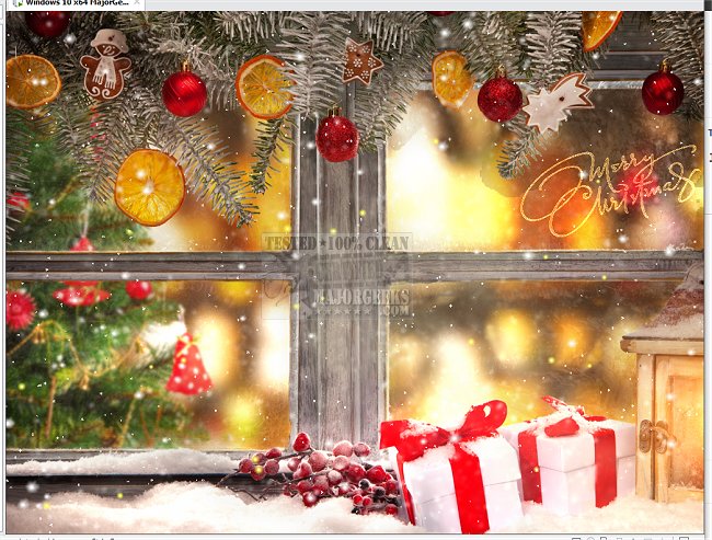 You'll find all the classic Christmas elements on your desktop, including gingerbread, decorations, and a beautifully decorated tree. A charming snowfall and a festive Christmas melody accompany the scene.
