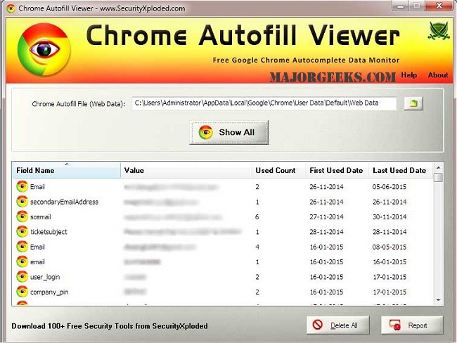 Chrome Autofill Viewer will easily see and delete all your autocomplete data from Google Chrome browser.