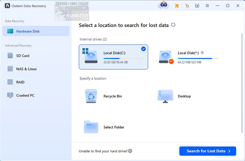 Cisdem Data Recovery is a powerful tool designed to help you recover your important data. It can restore a wide variety of files, such as documents, videos, music, photos, archives, emails, and bookmarks. This software works effectively with both internal and external hard drives on Windows systems, making it a versatile option for safeguarding your valuable information