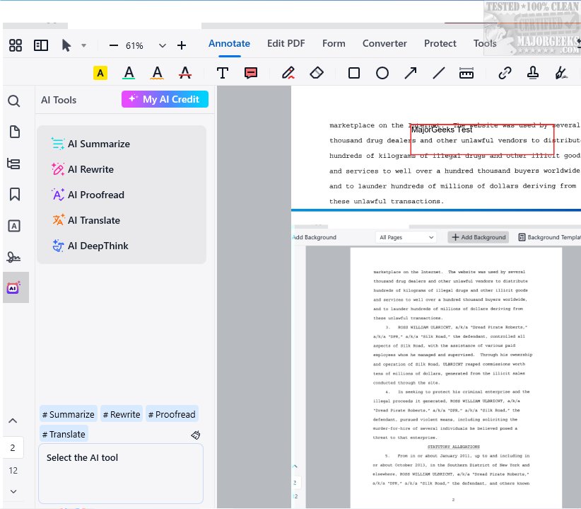 One of the standout features of Cisdem PDFMaster is its PDF AI capability, which facilitates efficient reading by summarizing PDF content, accurately and instantly translating text, and rewriting content for clarity. Additionally, it offers proofreading features to help eliminate errors and provides an advanced understanding of complex documents through its DeepThink function.