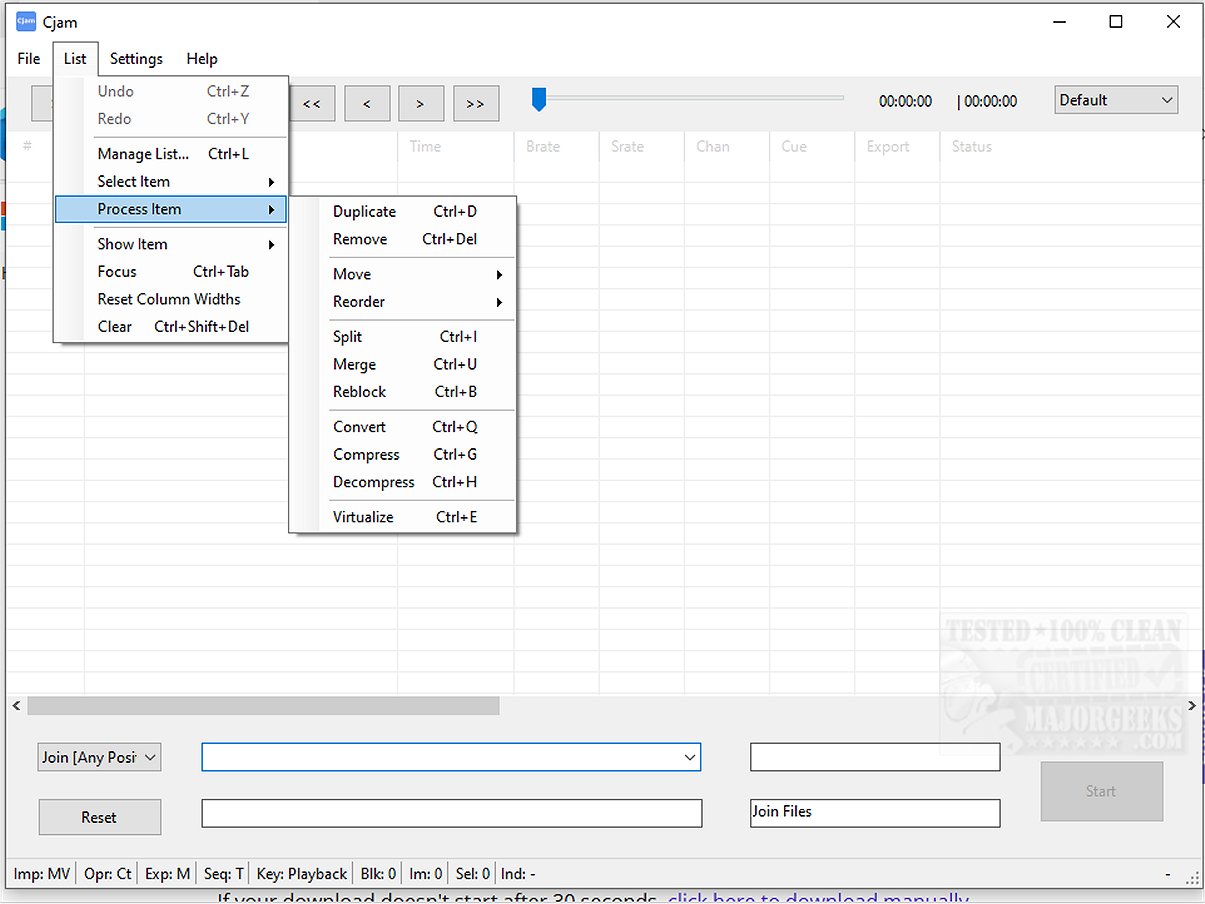 One of the standout features of Cjam is its ability to define operations through text input, which facilitates the execution of multiple independent actions in a sequential manner. This capability allows for quick and effective file editing without the need for decoding and re-encoding, ensuring that audio quality remains intact.