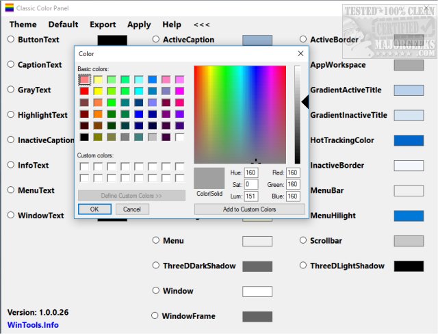 The latest versions of Windows 10 now limits many of the colors you can use for compatibility reasons, and that's why this tool was created. Your results may vary depending on your Windows version and settings. Some applications also use different display techniques to find some apps will not load the color you chose.