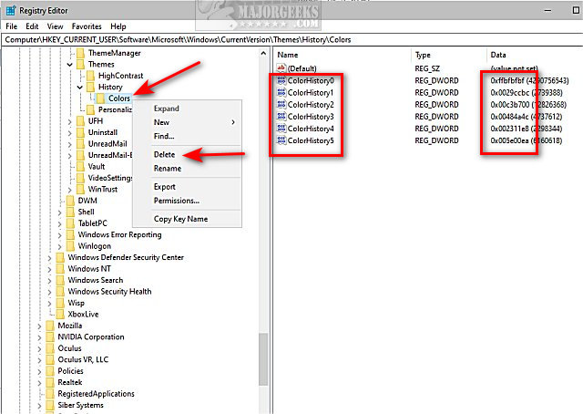 Double-click Clear Recent Colors History.reg to clear the color history.