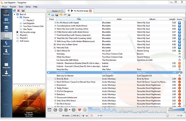 Now with Podcast support, including integration and synchronization with gpodder.net. Music from Soundcloud and jazzradio.com is available in the Internet tab in the sidebar, as well as any songs you've uploaded to Google Drive. Clementine Music Player will also now show mood bars for the music you play from your local disc.
