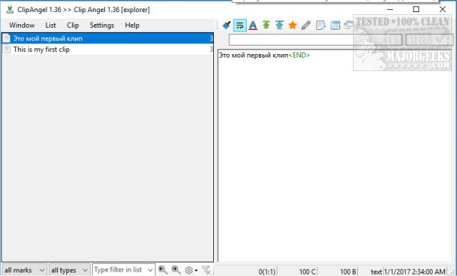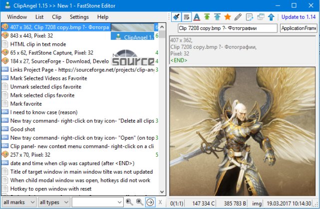 ClipAngel began capturing our history immediately as I took the first screenshot. The list continued and on. Occasionally you might see some Russian text, but rarely enough to be a problem.