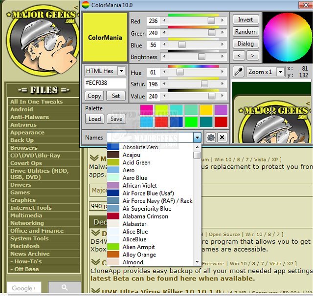 ColorMania does get a hit on VirusTotal, and you may get a warning from your antivirus that the file isn't commonly downloaded