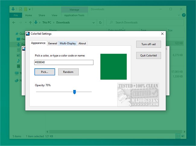 ColorVeil is a valuable tool that allows you to adjust the color and brightness of your screen. You can use different colors to express your mood or reduce eye strain by dimming your screen below its lowest available setting. This can be especially helpful at night and may also help save battery life on notebooks and tablets.