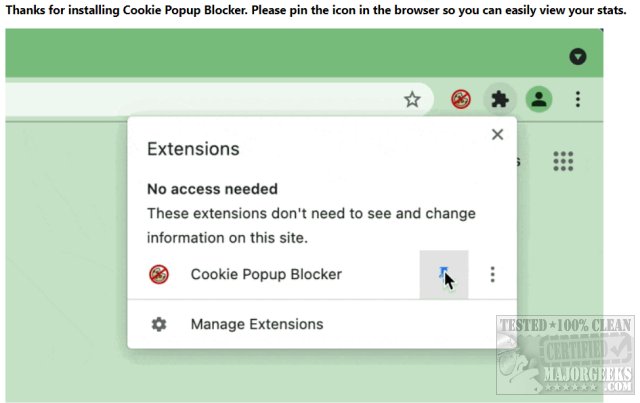 You can pin the extension and click on it anytime to see how many cookies popups have been blocked. In our test, we did find that Cookie Popup Blocker could break some websites, including Facebook.