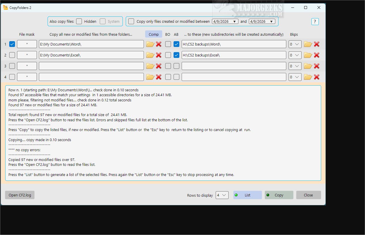 CopyFolder 2 – the ultimate freeware tool that makes copying new or modified files a breeze! This powerful, user-friendly program is designed with portability and open-source features, enabling you to transfer files effortlessly. Simply select your source folders and pair them with your desired destination folders for a smooth, seamless experience. Say goodbye to the hassle of file management and let CopyFolder do the heavy lifting for you!