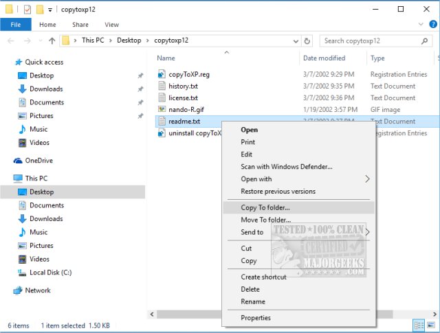 copyToXP is a registry tweak to enable the useful - but not installed by default - functions of XP and 2K that allow you to copy or move multiple files to any directory. Project has been abandoned.